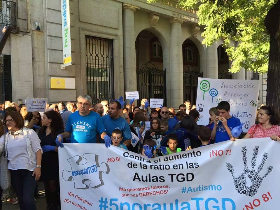 Desde hace tiempo venimos informando de las actuaciones que se están desarrollando desde el colectivo de las personas con TEA y sus familias para conseguir que desde la Comunidad de Madrid se resuelva el problema que genera superar la ratio de cinco alumnos/as en las aulas de apoyo de los Centros de escolarización preferente de alumnado con Autismo. La Federación Autismo Madrid y sus entidades, unidas a colectivos de familias como la Plataforma #5poraulaTGD, que se ha articulado específicamente para esta tarea, trabajan para que el gobierno de la Comunidad de Madrid cumpla con la ratio establecida, y a la que el propio gobierno de Cristina Cifuentes se ha comprometido. Y es que como es sabido, en algunos centros, se ha pasado a seis alumnos, incluso a siete y ocho por cada aula de apoyo.