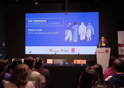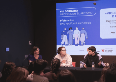 El miércoles 5 de marzo, en el marco del Día Internacional de la Mujer, la Federación Autismo Madrid celebró, en colaboración con Fundación Orange, la VIII Jornada Mujeres en el Autismo «Violencias: una realidad silenciada». En su organización participaron el Grupo de Mujeres Autistas de Fundación Quinta, el Comité para la Promoción y Apoyo de la mujer autista – CEPAMA, y profesionales de las entidades federadas DogPoint, Fundación Quinta, Fundación ConecTEA, Asociación APNA, Asociación ARAYA, Asociación Conciencia TEA, Asociación Nuevo Horizonte y Asociación CEPRI. Muchísimas gracias a todas ellas.