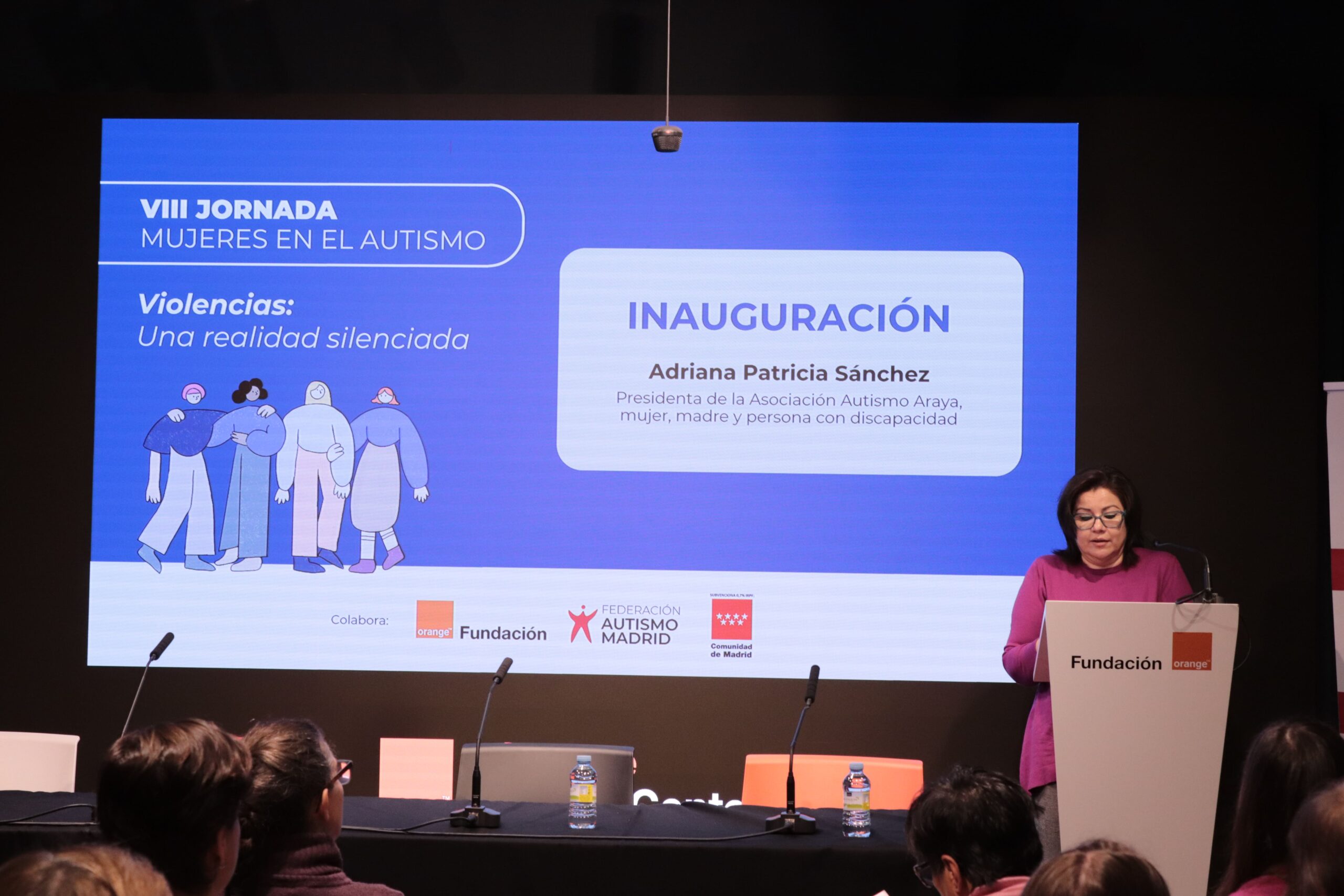 Adriana Patricia Sánchez, presidenta de la Asociación Autismo Araya, mujer, madre y persona con discapacidad, fue la encargada de inaugurar la jornada. Como madre de una adolescente autista, destacó que «no podemos olvidar que los cuidados también reposan en las manos de mujeres, ya que más del 80% de los cuidadores no profesionales lo somos».