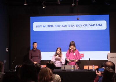 La jornada comenzó con la lectura del manifiesto «Soy mujer. Soy autista. Soy ciudadana.», donde mujeres autistas expusieron sus demandas, resaltando la urgencia del diagnóstico temprano, la falta de recursos específicos y la necesidad de formación especializada en autismo y género para los profesionales. En la lectura participaron Neila Lázaro, Nina Carl y Ana Dierssen. (Lee el manifiesto completo en este enlace).